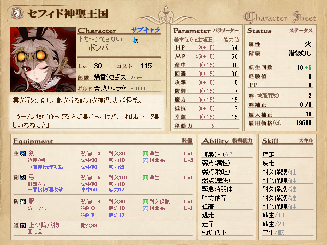 今期は11期とほぼ同じビルドです。唯一の違いは、「踏破を取らなかった」ことですが、踏破無しでもまったく問題なしでした。複製キャラには移動力がなくてもあまり問題なさそうですねぇ。