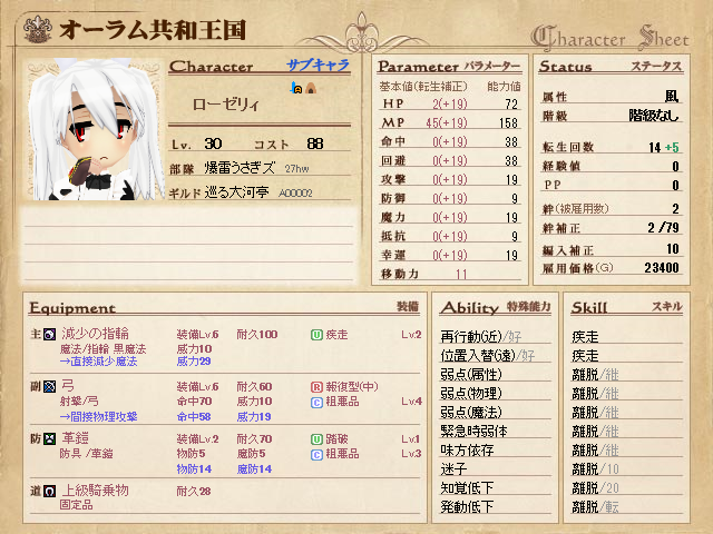 今期もローゼリーは、特殊能力・スキル・PPのすべてがまったく変化なしです。