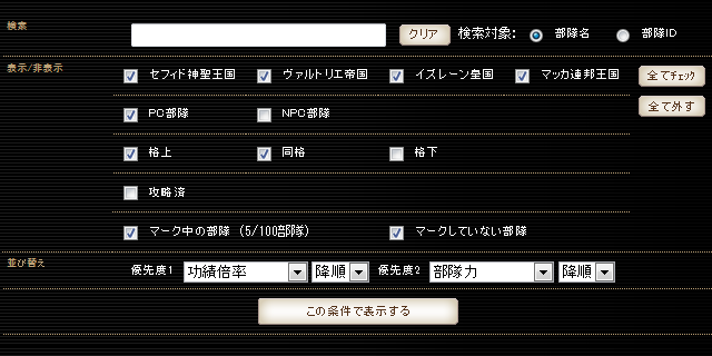 初心者の方は「格上」のチェックをはずし、「同格」だけで行った方がよいかもしれません。(遠征に慣れれば、同格も格上もそんなに差がありませんが。)