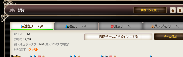 拠点部隊力、功績倍率、遠征先を選択する画面で確認することができます。