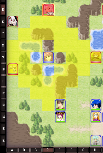 そんなときに、重宝するのが、「離脱付き遠距離火力さん」です。今回の私の部隊ではI13にいます。一人いると格段に拠点攻略が楽になります。というわけで、I13のキャラでD5の敵キャラを倒しに行きます。