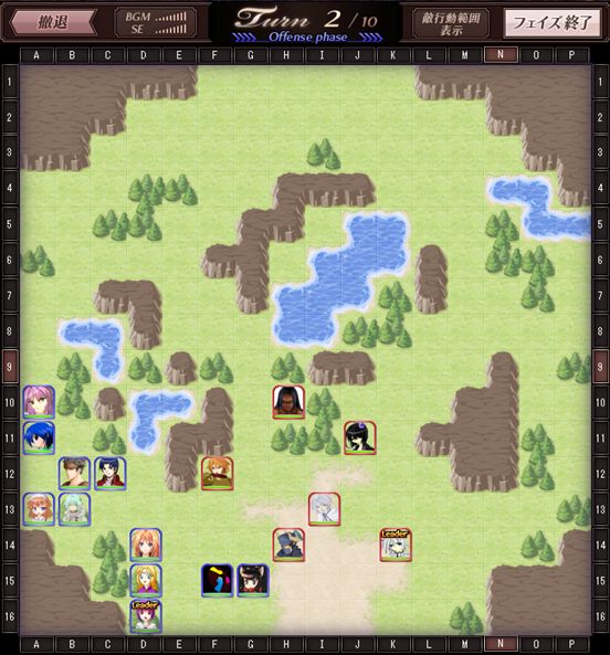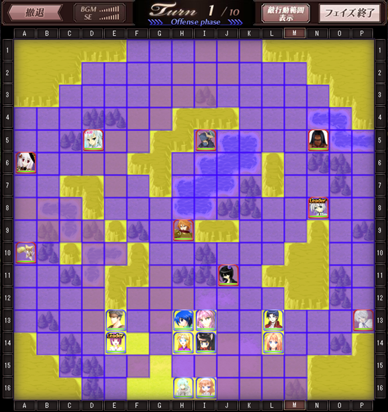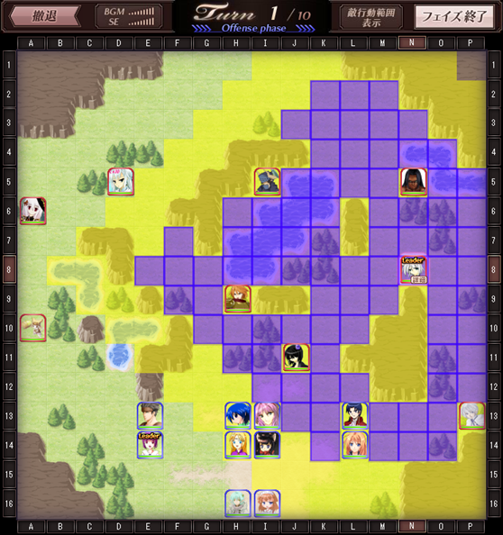1ターン攻略をあきらめる場合は、自軍をいったん安全地帯~敵の攻撃の範囲外~に移動する必要があります。そうしなければ甚大な被害を受けるでしょう。